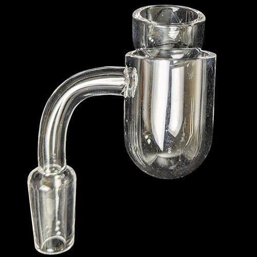 The 25mm Round Bottom Bucket Quartz Banger Set offers functionality, flavor, and value. This set includes a 25mm banger with a round bottom bucket which minimizes waste by encouraging concentrate to pool in the center for even heating. The included carb cap allows for airflow regulation. The 25mm size provides a good balance between capacity and heat retention whereas the design allows for easy cleaning.
