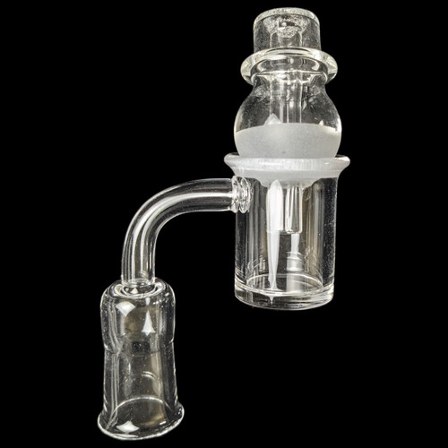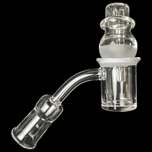 The beveled edge on the top of the banger creates a more precise seal with the carb cap, directing airflow more efficiently. This helps to prevent hot spots. The frosted finish on the top of the banger helps to improve heat retention. It is constructed from durable and heat-resistant quartz glass. The matching carb cap helps to control airflow and maximize vapor production.