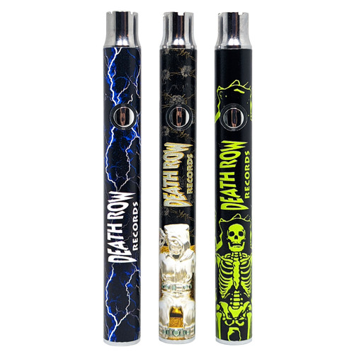 Description: Death Row Records 510 350mah VV Carto Battery USBC Display of 15 is available at SWED Wholesale and ready to ship throughout the US.