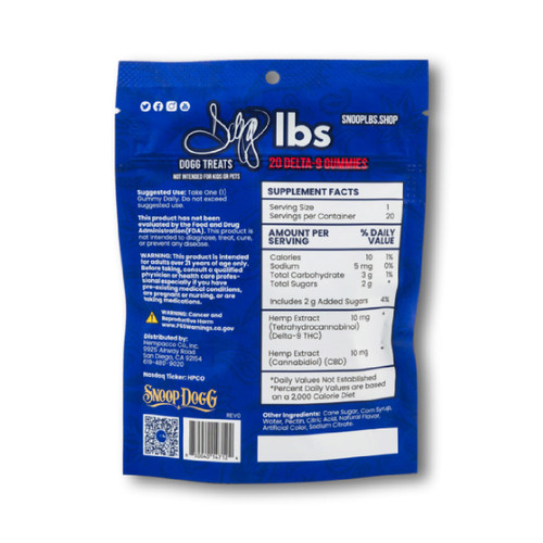 Description: Dogg lbs Delta 9 Gummies 20ct Pouch Display of 10 is available at SWED Wholesale and ready to ship throughout the US.