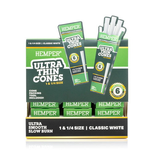 Buy Hemper Ultra Thin White Paper Cones 1¼ (6ct) Display of 24 in bulk from SWED Wholesale. Get the best wholesale value across the US on your bulk orders.